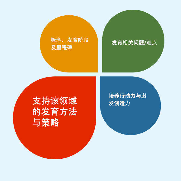 第二、三、四、五單元分別從體格、社交/情感、語言和認知四大領(lǐng)域闡釋嬰幼兒的發(fā)育規(guī)律和發(fā)育特征,認識每個領(lǐng)域發(fā)育可能出現(xiàn)的難點和問題,進而探討支持和促進發(fā)育的方法策略,最后從培養(yǎng)行動力和激發(fā)創(chuàng)造力這兩個關(guān)鍵維度從實訓中指導如何通過玩耍支持這兩大重要能力的提升。